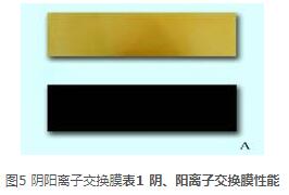 陽膜為苯乙烯系磺酸型均相陽離子交換膜(JCM-Ⅱ)(圖5A下);陰膜為苯乙烯季銨型均相陰離子交換膜(JAM-Ⅱ) (圖5A上);我公司自主研發生產。在外加直流電場力的作用下,陰膜只讓陰離子通過而阻擋陽離子,陽膜只讓陽離子通過而阻擋陰離子,它們具有耐強酸、強堿,柔韌度強,機械強度高,使用壽命長等特點。各膜性能指標如下: