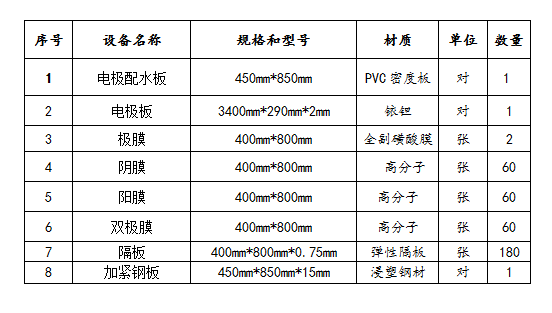 序號 設備名稱 規格和型號 材質 單位 數量